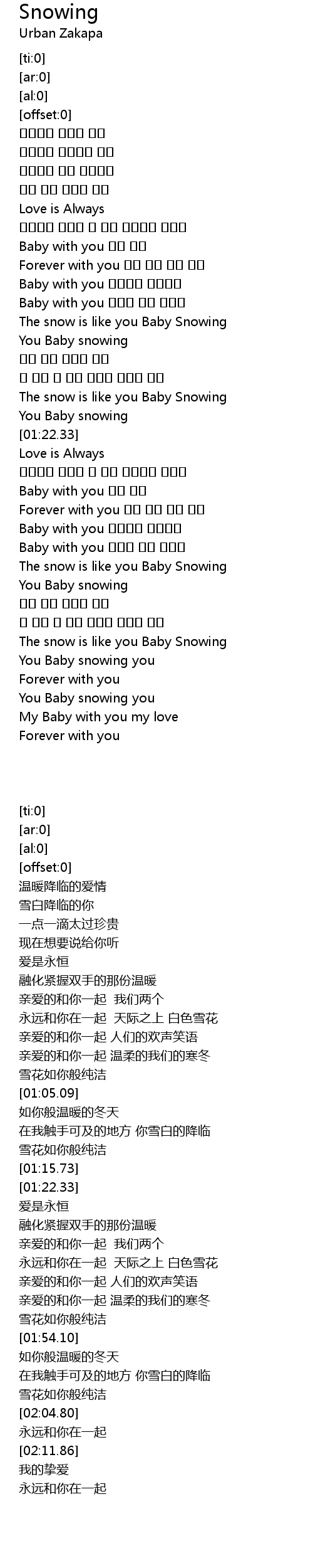| [01:15.73] | You Baby snowing |