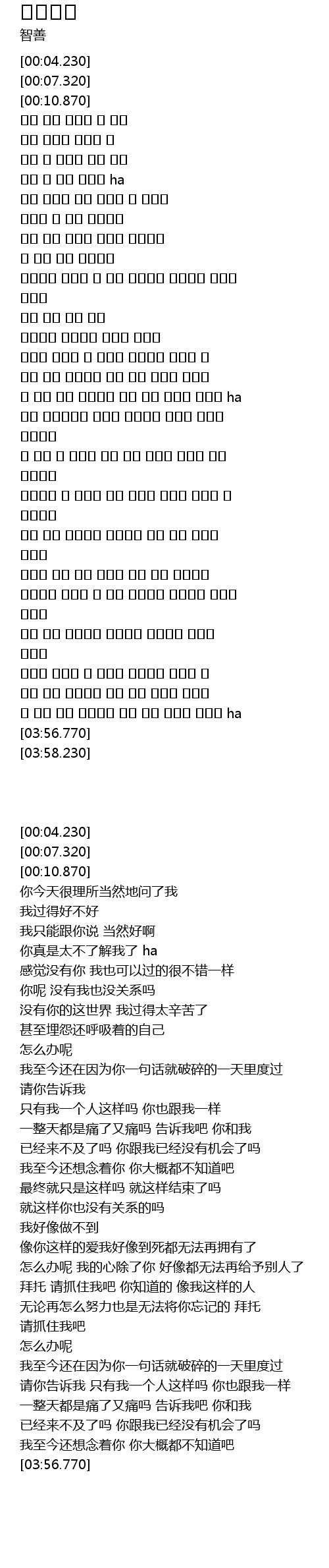 | [03:29.110] | 이미 너무 늦었나요 우리 다시 기회는 없나요 |
