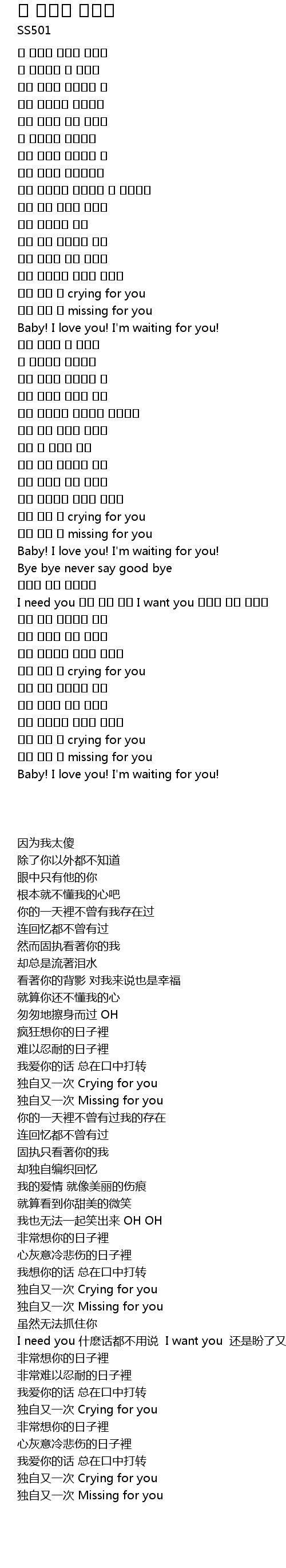 | [03:32.480] | 혼자 다시 또 crying for you |