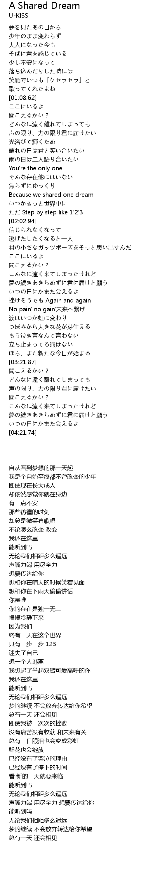 | [01:54.57] | Because we shared one dream |