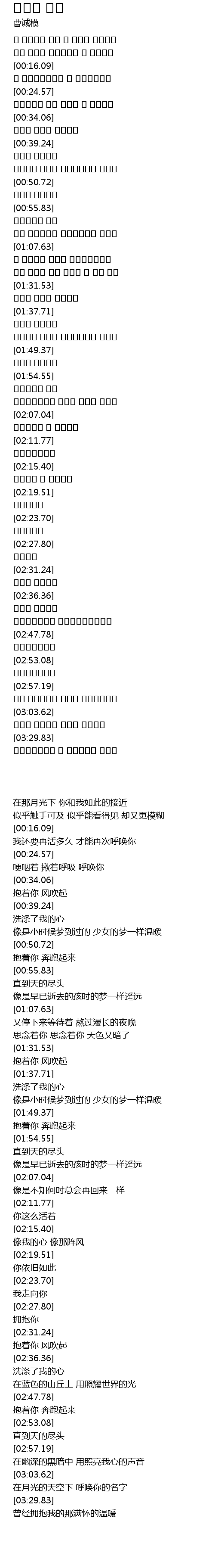 在月光的天空下 呼唤你的名字 |