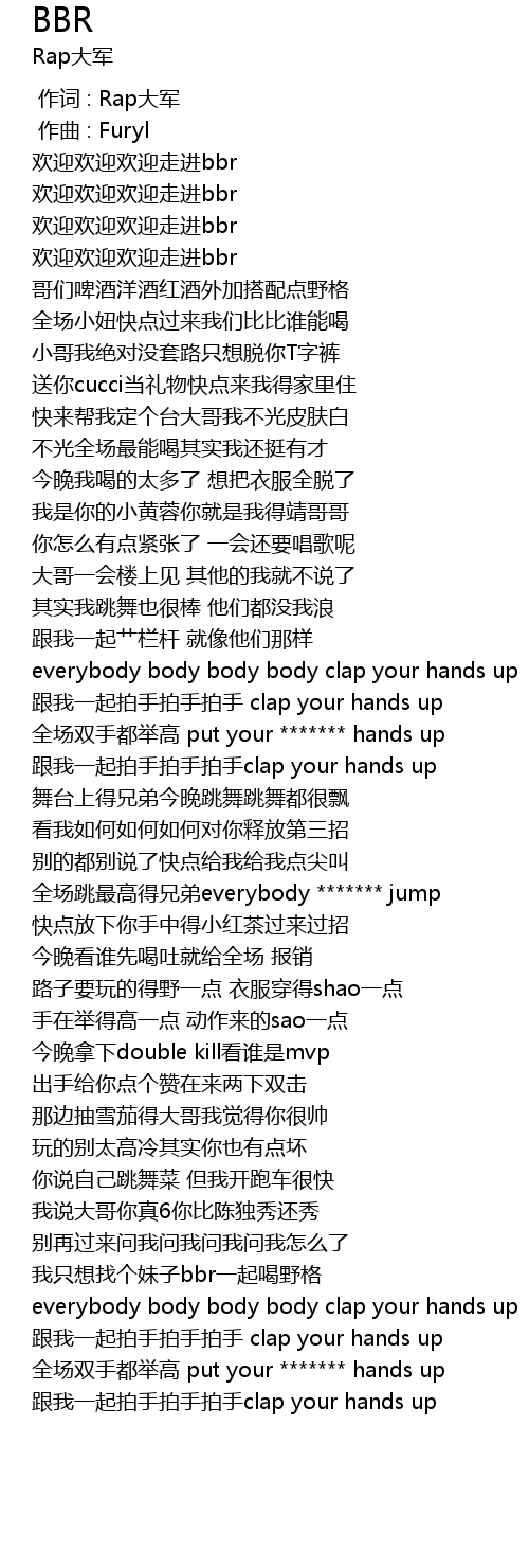 | [01:11.11] | 全场双手都举高 put your ******* hands up |
