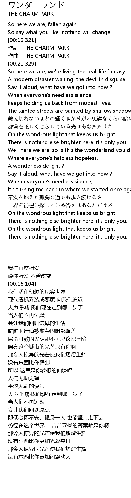 | [00:16.104] | 作詞:THE CHARM PARK |