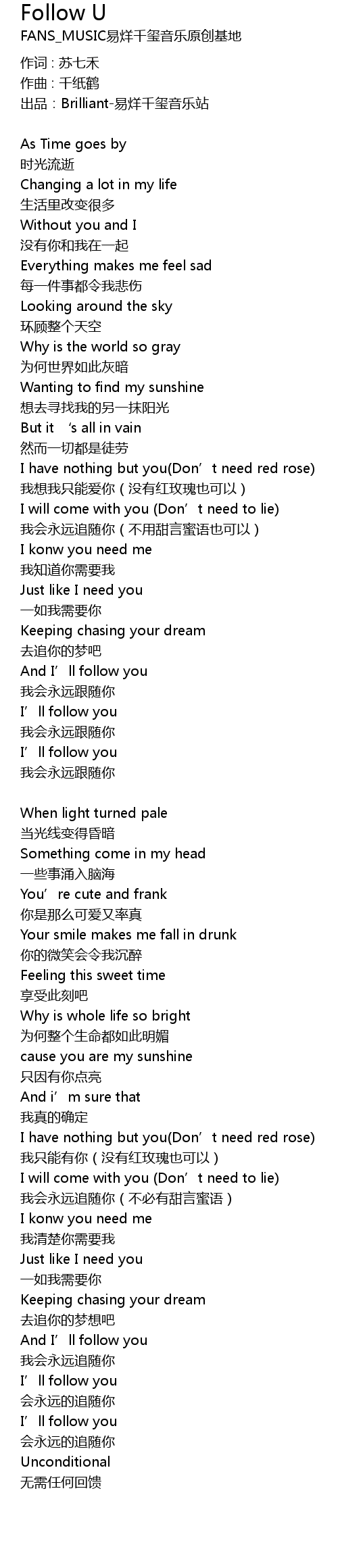 | wo hui yong yuan zhui sui ni bu yong tian yan mi yu ye ke yi | |