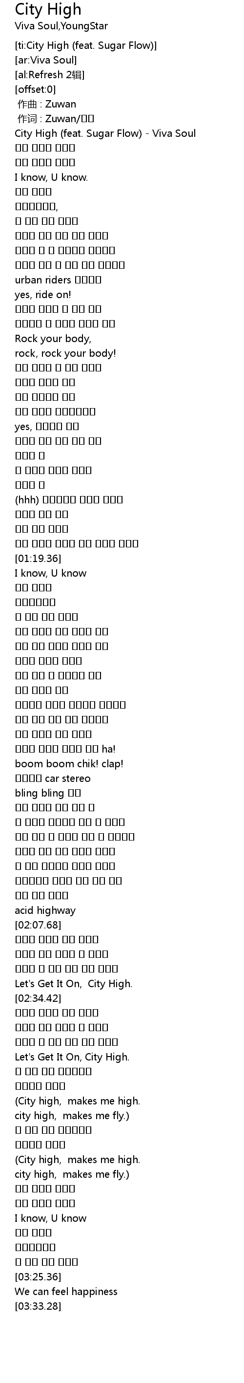 | [00:01.51] | City High (feat. Sugar Flow) - Viva Soul |