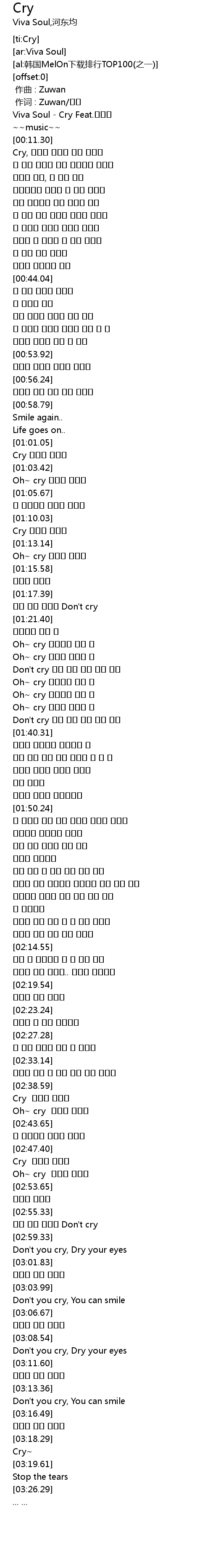 | [00:01.81] | Viva Soul - Cry Feat.하동균 |