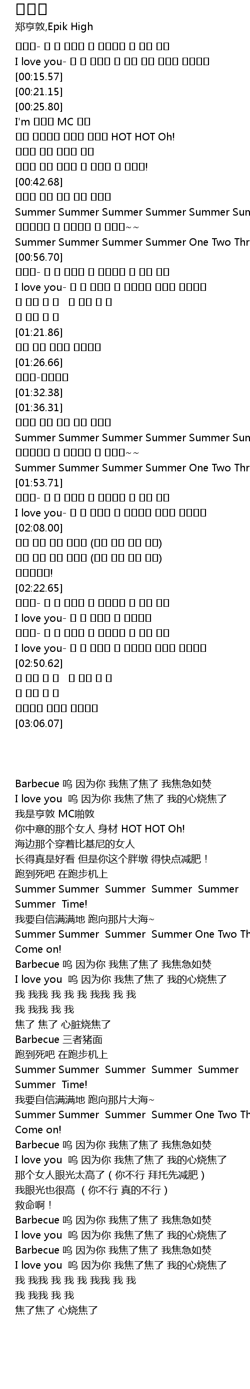 | [00:00.88] | Barbecue 呜 因为你 我焦了焦了 我焦急如焚 |