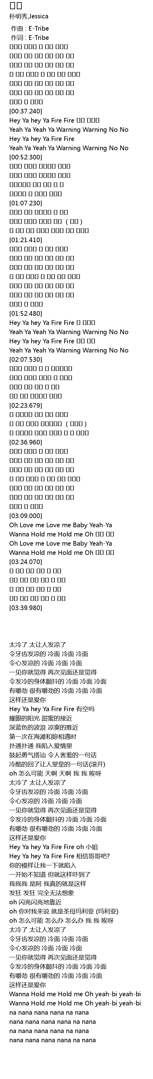 | [01:52.830] | Hey Ya hey Ya Fire Fire oh 小姐 |
