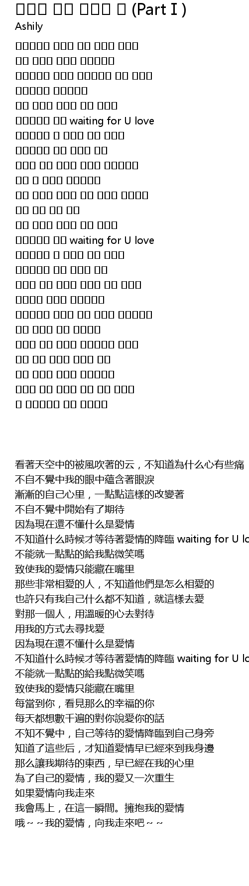 | [00:45.940] | 언제사랑이 올까 waiting for U love |
