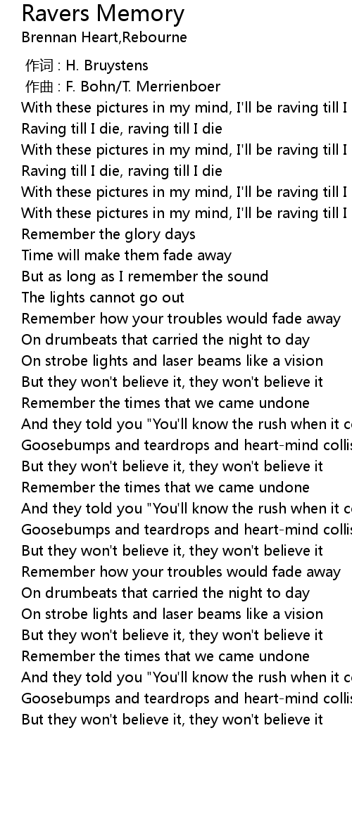 | [00:39.22] | With these pictures in my mind, I' ll be raving till I die |