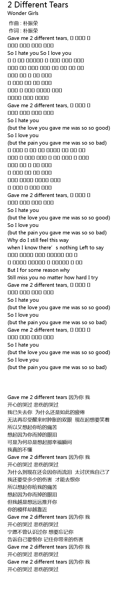 | [01:52.580] | Gave me 2 different tears 因为你 我 |