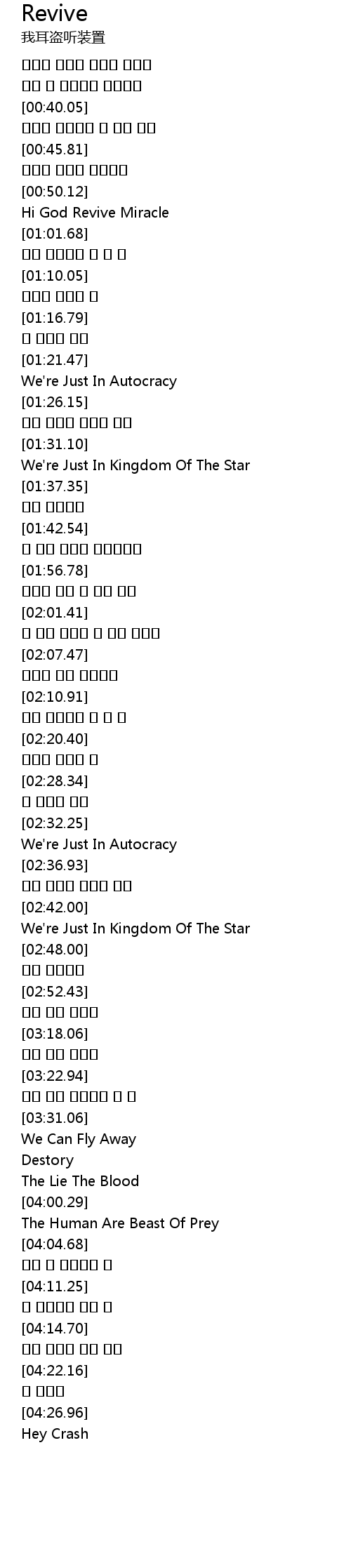 | [00:53.62] | Hi God Revive Miracle |