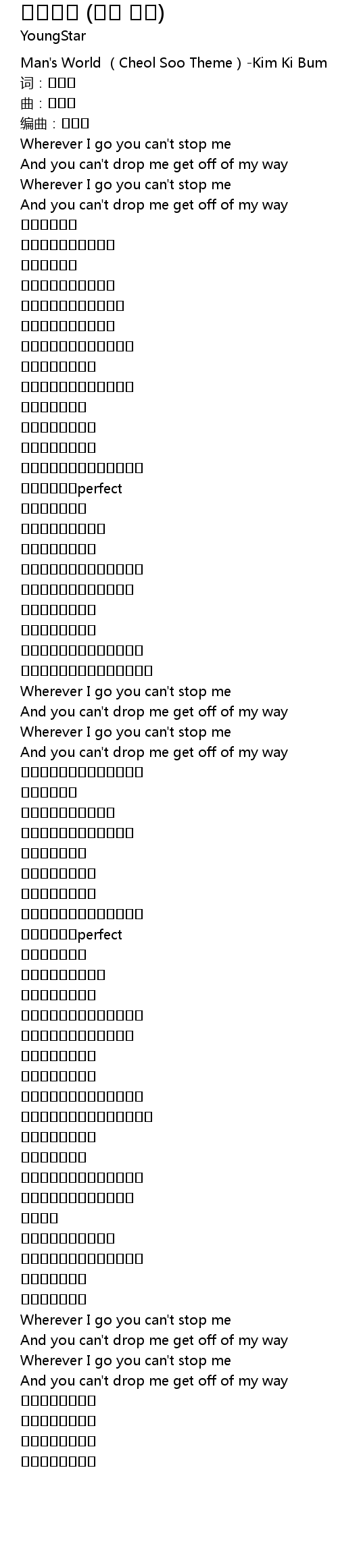 | [00:00.77] | Man' s World Cheol Soo Theme Kim Ki Bum |