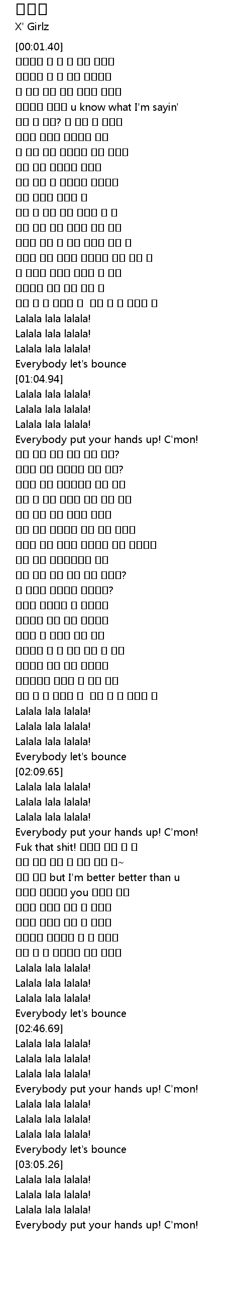 | [03:03.53] | Everybody let' s bounce |