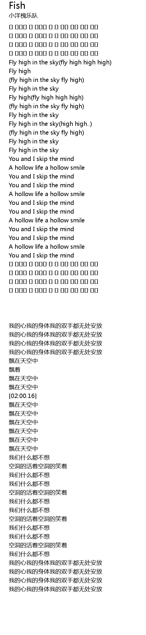 | [02:15.76] | Fly high in the sky high high.. |