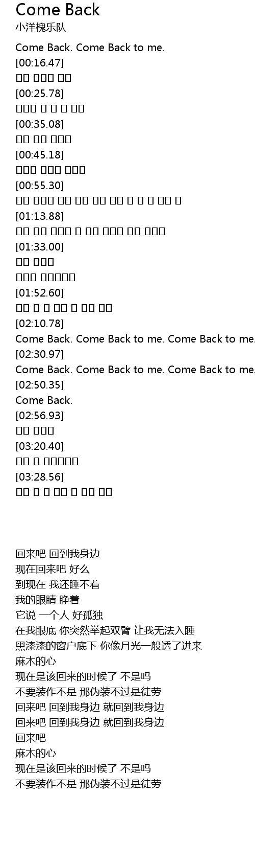 | [02:33.91] | Come Back. Come Back to me. Come Back to me. |
