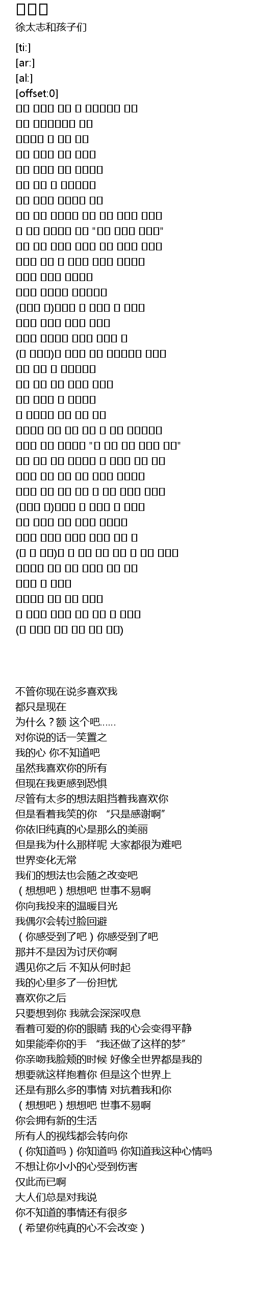 | [04:17.20] | (希望你纯真的心不会改变) |