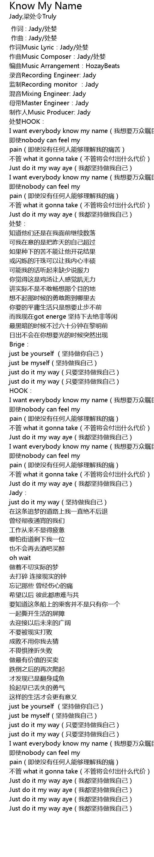 | [00:07.34] | hun yin Mixing Engineer: Jady |