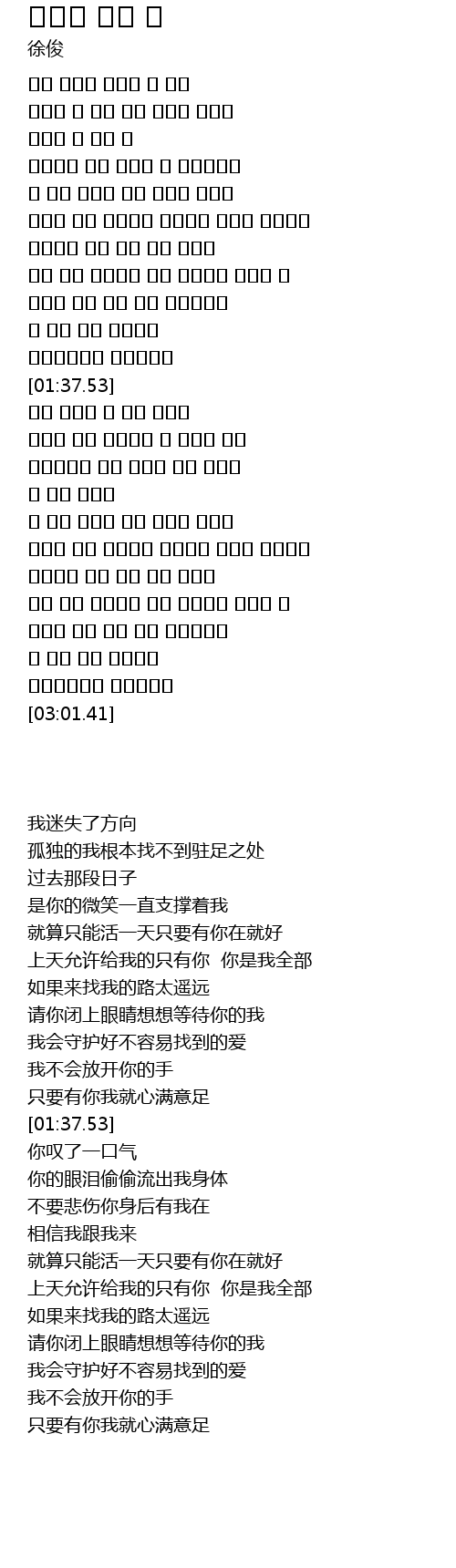 | [00:53.55] | 上天允许给我的只有你 你是我全部 |