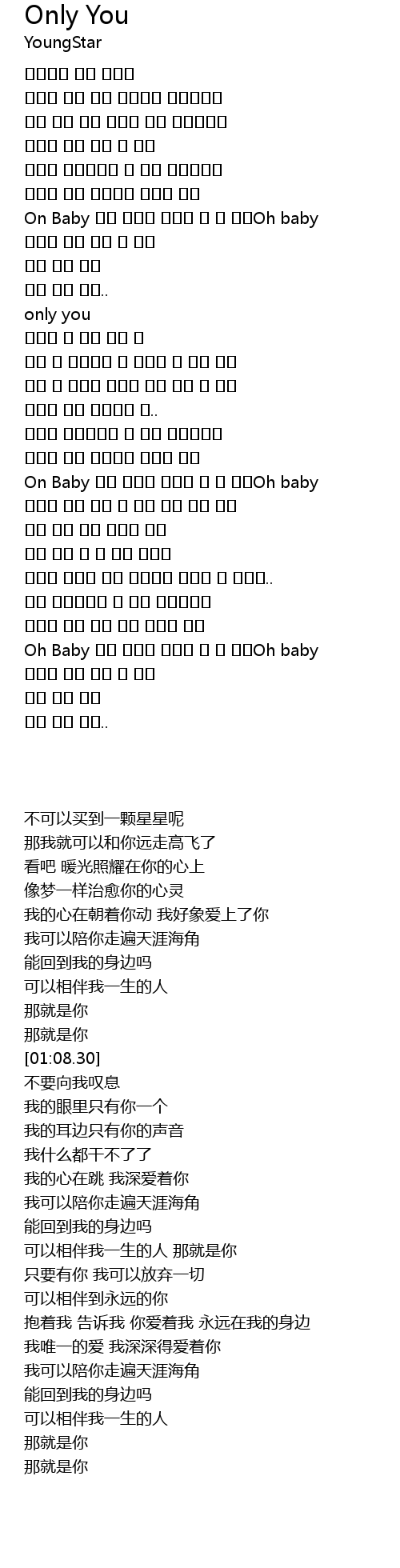 | [01:43.00] | On Baby 지금 나에게 달려와 줄 수 없니Oh baby |