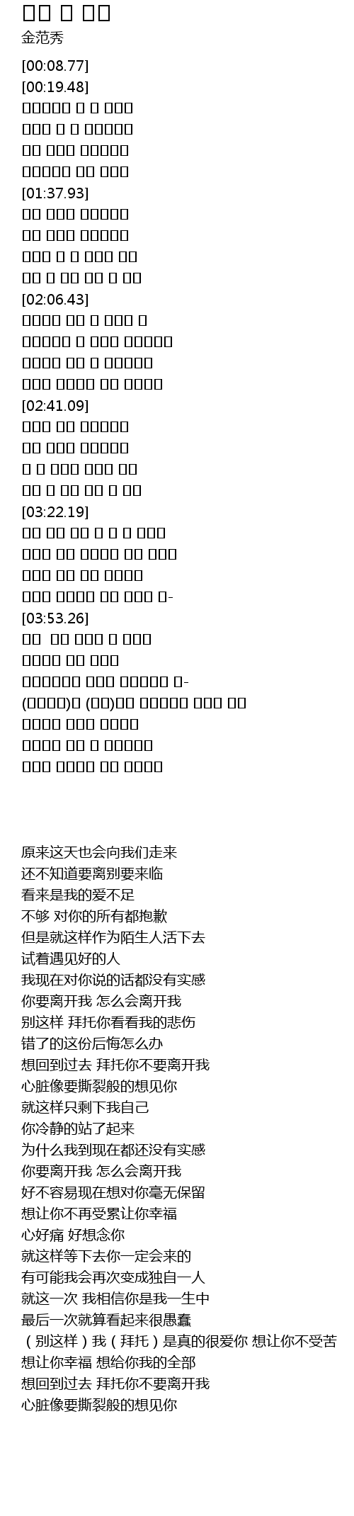 | [03:58.15] | 다시 내가 혼자될 줄 몰랐어 |