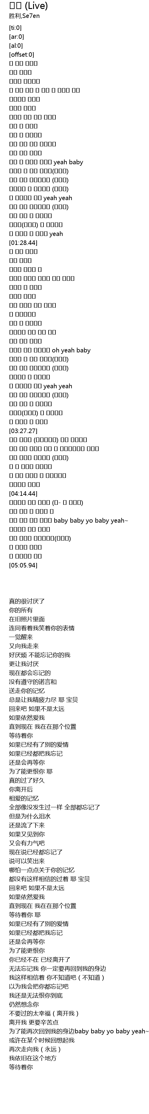| [04:29.28] | 행복하게 살진 말아줘 (오- 날 떠나서) |