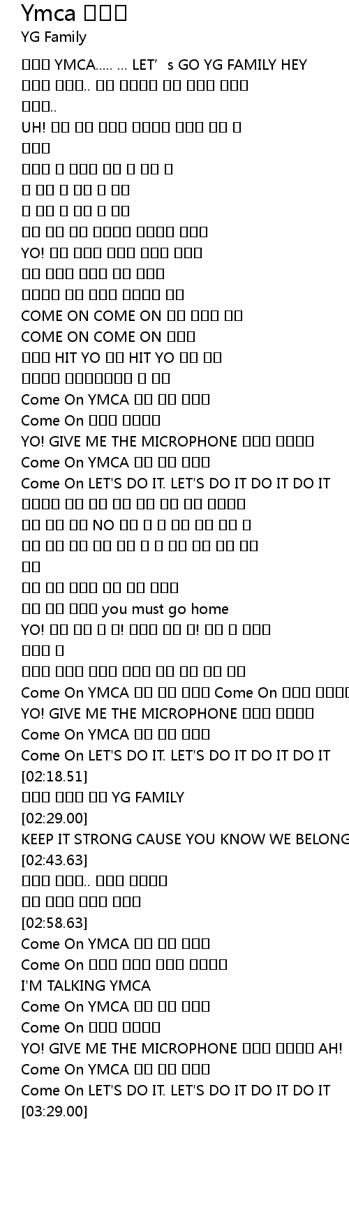 | [00:00.74] | YMCA..... ... LET' s GO YG FAMILY HEY |