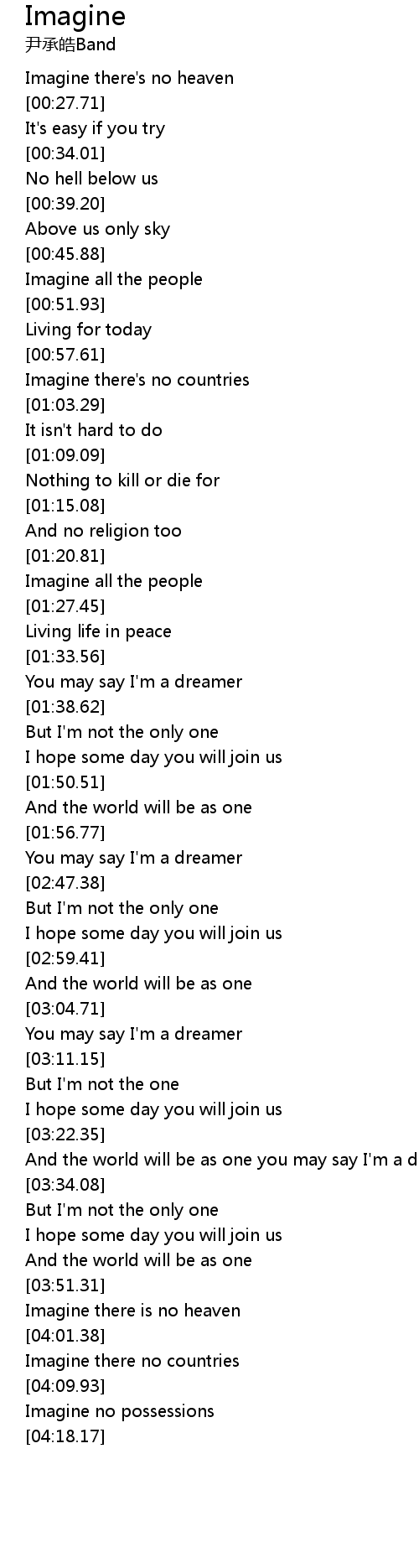 And the world will be as one you may say I'm a dreamer |