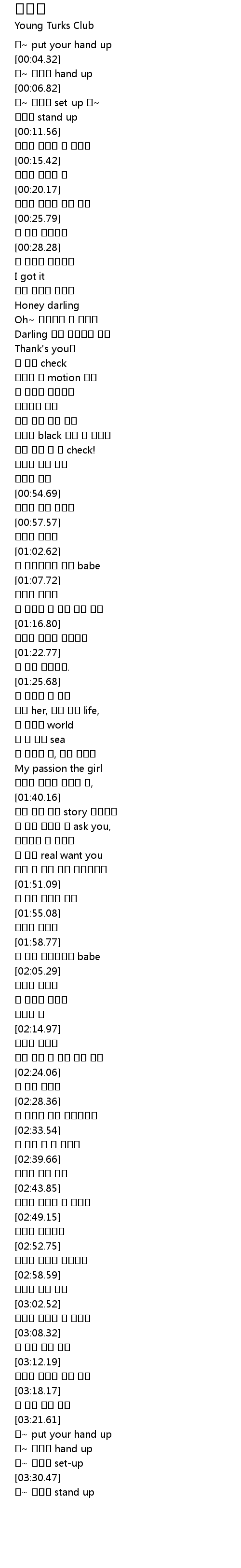 [03:24.41] 워~ put your hand up