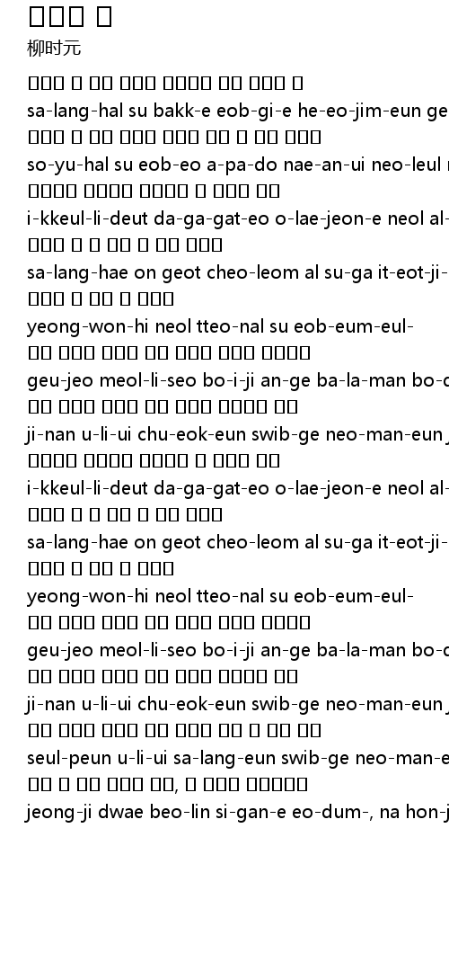 | sa-lang-hal su bakk-e eob-gi-e he-eo-jim-eun geu-nyang i-byeol-il ppun- | |