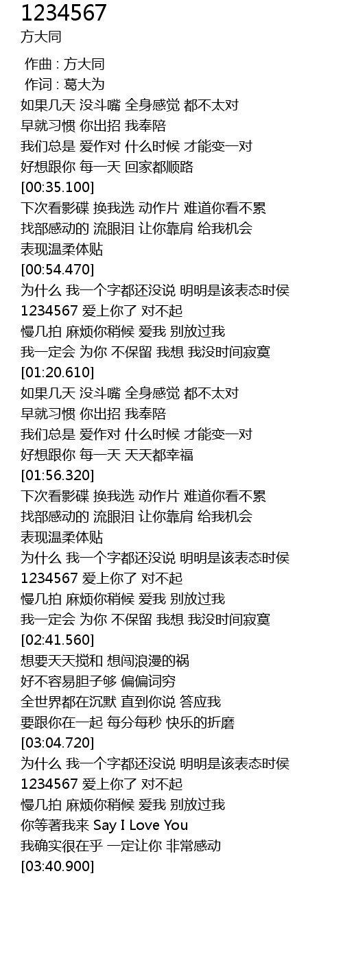 | [03:12.150] | 1234567 爱上你了 对不起 |