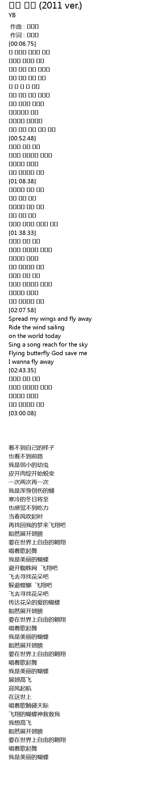 | [02:56.22] | 나는 아름다운 나비 |
