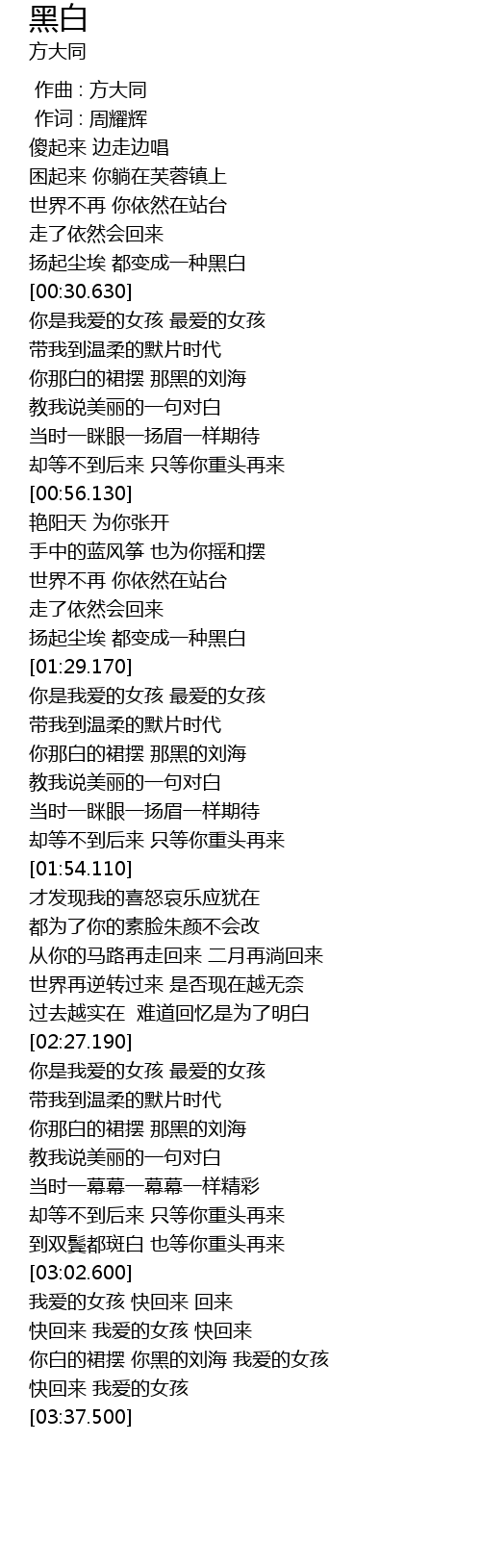 | [03:20.320] | 你白的裙摆 你黑的刘海 我爱的女孩 |