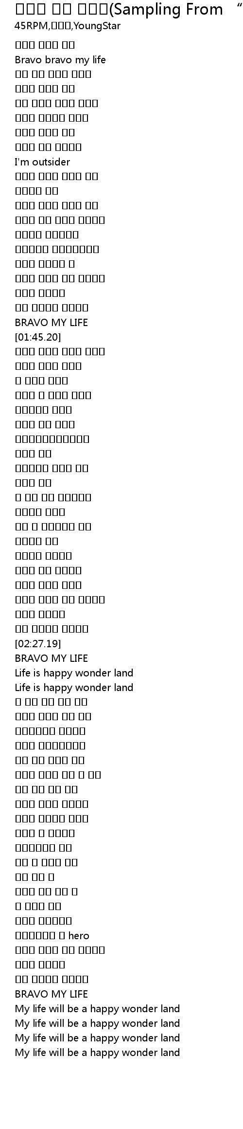 | [01:41.90] | BRAVO MY LIFE |