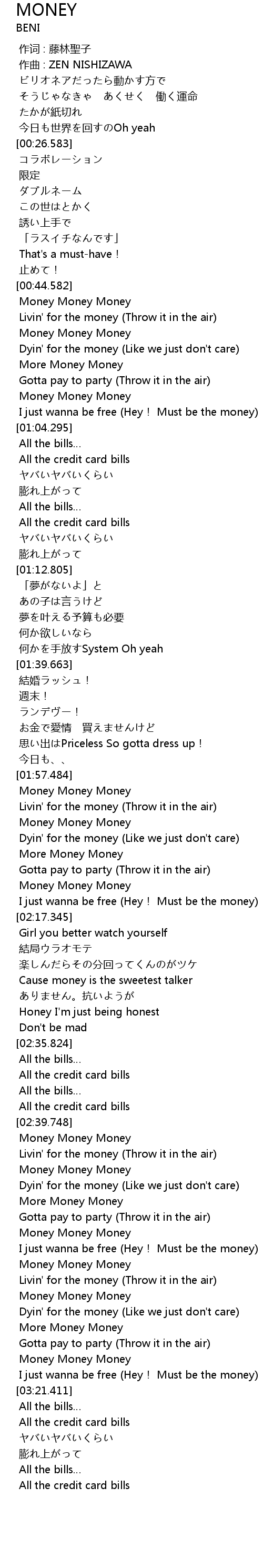 | [00:47.079] | Livin' for the money (Throw it in the air) |