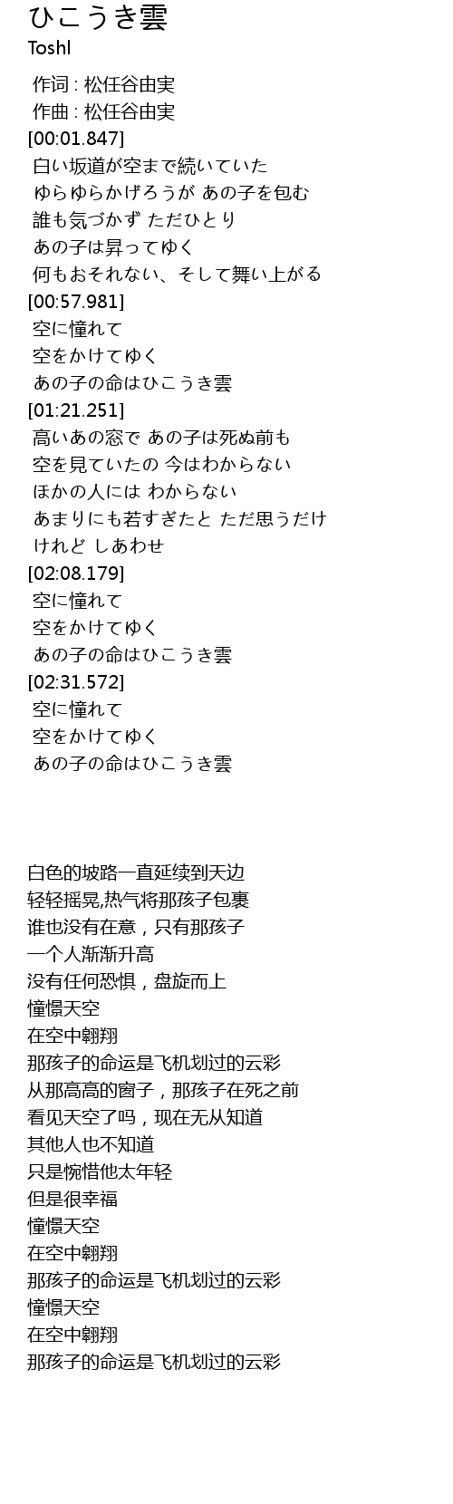 | [00:46.846] | 何もおそれない、そして舞い上がる |
