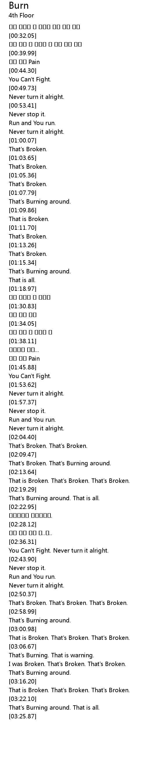 | [02:10.16] | That' s Broken. That' s Burning around. |