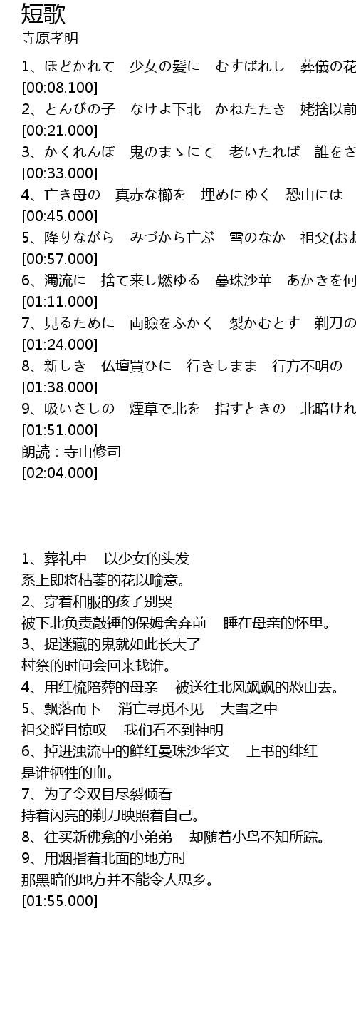 | [01:55.000] | 朗読:寺山修司 |