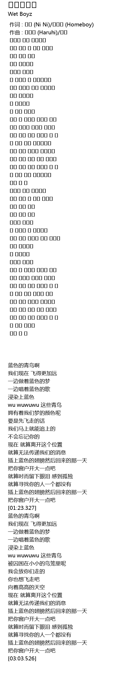 | [02:11.444] | wu wuwuwu 这些青鸟 |
