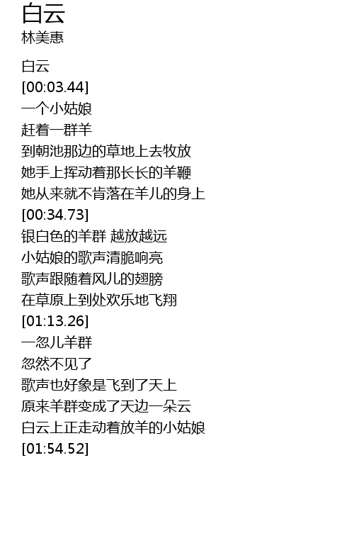 | [01:46.11] | 白云上正走动着放羊的小姑娘 |