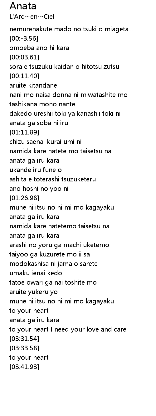 Anata 歌词