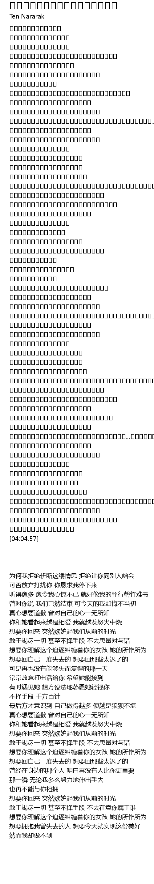 | [02:59.94] | ก็นาทีที่เรียกยังไง ไขว่คว้าเท่าไหร่ก็ไม่ได้กอด...อีกแล้ว |