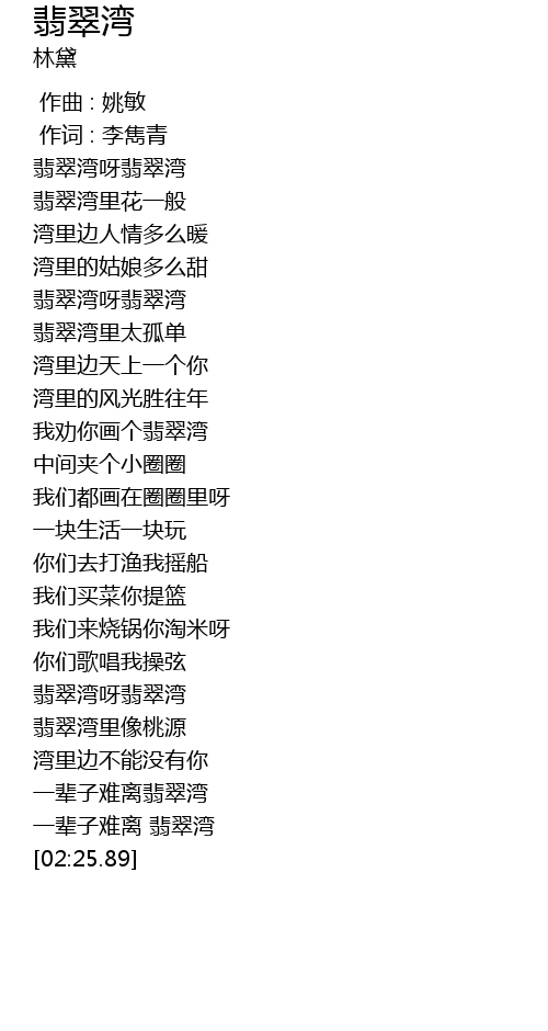 | [00:17.79] | 翡翠湾呀翡翠湾 |