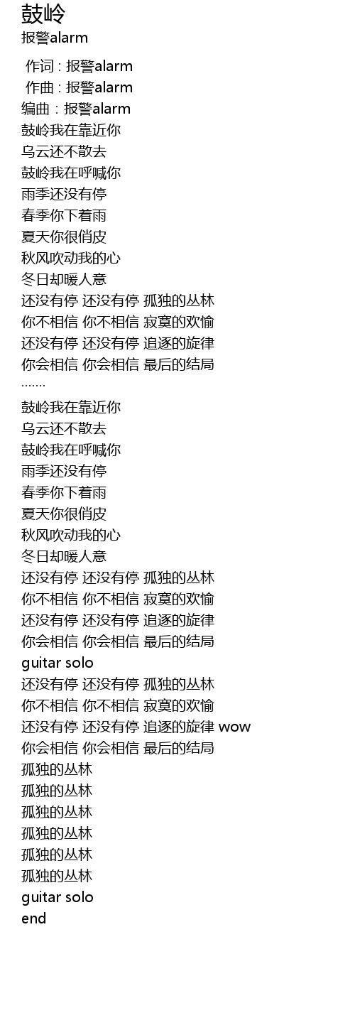 | [02:03.733] | 鼓岭我在呼喊你 |