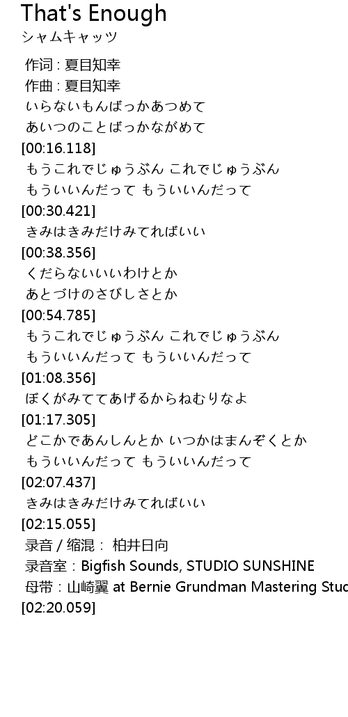 | [00:56.719] | もうこれでじゅうぶん これでじゅうぶん |