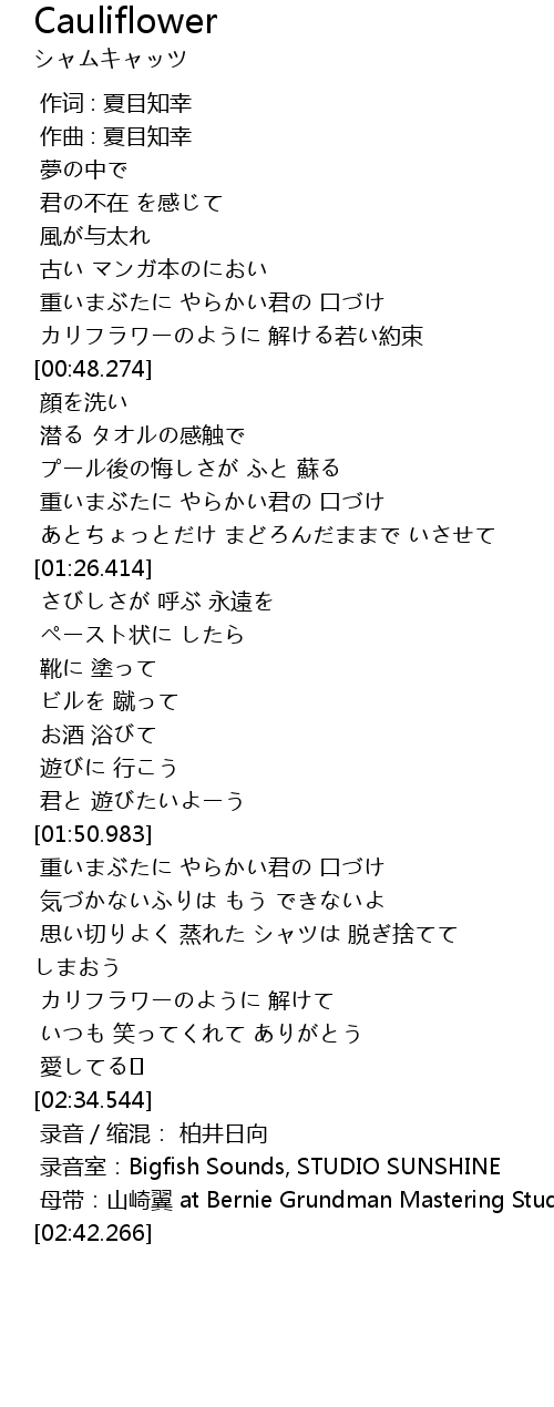 | [02:22.455] | カリフラワーのように 解けて |