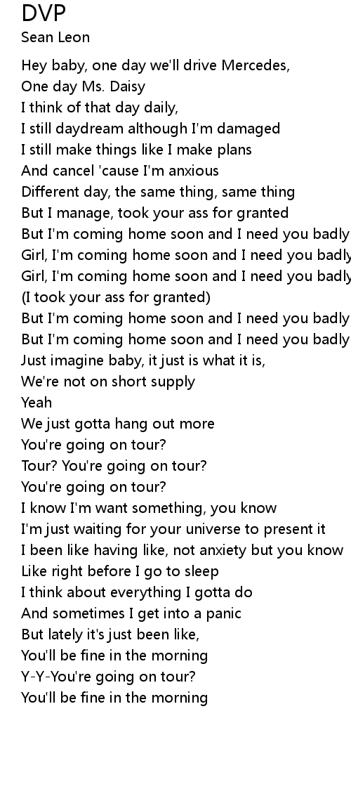 | [00:49.17] | Girl, I'm coming home soon and I need you badly |