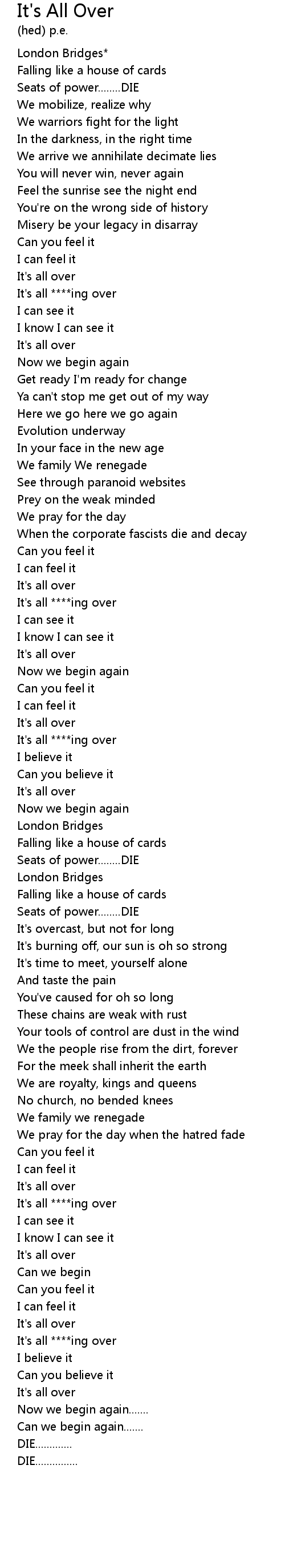 It's all ****ing over |