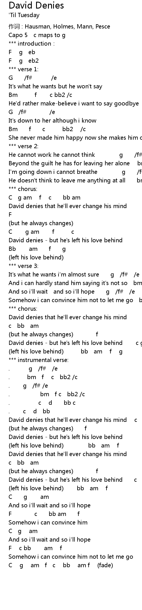 | David denies that he' ll ever change his mind c g am f c bb am | |