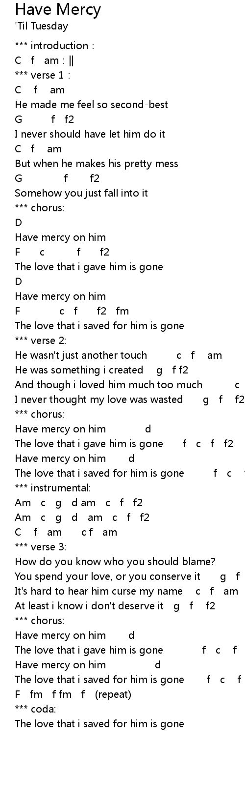 | 歌曲 | Have Mercy |